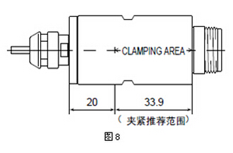 7.主軸的安裝方法 警 告 安裝主軸時(shí),確認(rèn)支架是否連接在機(jī)器地線上。如果未連接的話,會(huì)造成故障或漏電時(shí)觸電的原因。 注 意 安裝主軸時(shí),不可使主軸受到?jīng)_擊或損傷。否則,會(huì)造成主軸內(nèi)部的故障原因。 注 意 將主軸安裝在支架上時(shí),請(qǐng)?jiān)趭A緊推薦范圍進(jìn)行安裝。如果超過(guò)夾緊推薦范圍時(shí),會(huì)給軸承等造成影響導(dǎo)致旋轉(zhuǎn)不良或故障的原因。 不可過(guò)度緊固螺旋開(kāi)槽支架的緊固螺栓,請(qǐng)注意。 1,將主軸安裝在支架上時(shí),請(qǐng)按照?qǐng)D-8的夾緊推薦范圍進(jìn)行安裝。