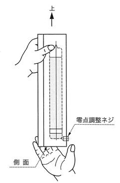 水平調(diào)整螺絲向上, 用手輕拍測(cè)定面, 調(diào)整方法如圖: | ![]() |