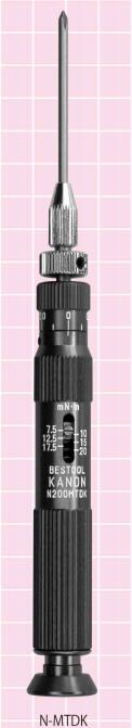 N-MTDK是一種超小型空旋式扭力起子,超出預(yù)設(shè)扭力時(shí),會(huì)自動(dòng)空轉(zhuǎn)。 可以正確的測(cè)量精密儀器等螺絲的扭矩值,實(shí)施正確的緊固作業(yè)。 導(dǎo)入了筒夾式結(jié)構(gòu)方式,能牢牢固定住螺絲起子頭。有效的防止了其 脫落及丟失。 細(xì)長(zhǎng)形、重量?jī)H30克的構(gòu)造,即使是精密性的操作也不會(huì)感到疲勞。 最適合鐘表、照相機(jī)、醫(yī)療器械、電子儀器、手機(jī)、筆記本/IPAD平板 電腦等小型精密儀器的裝配。 測(cè)量范圍:7.5-80mN.m |