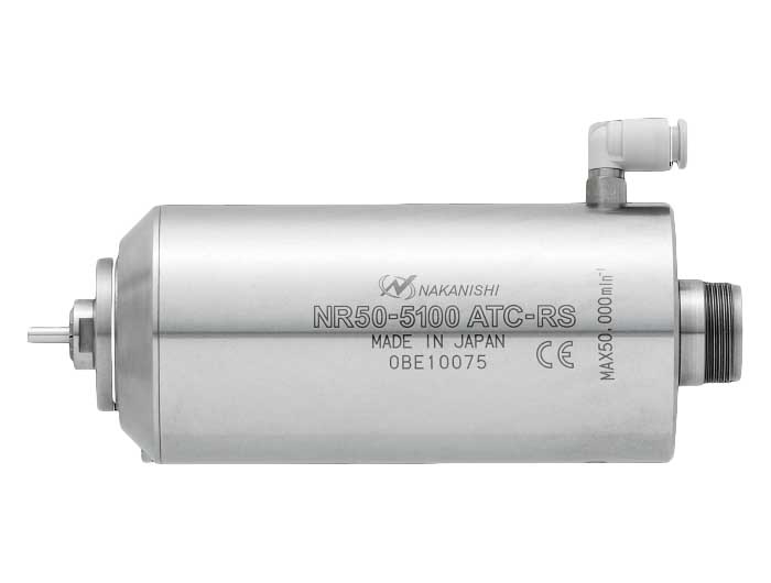 日本NAKANISHI自動換刀防塵分板機主軸NR50-5100ATC-RS,是常用自動換刀分板機主軸NR50-5100ATC的升級版,轉速5萬轉/min,旋轉跳動精度1μm,主軸尖端加裝防塵罩,最大限度減少異物進入主軸體內。夾頭還加裝橡膠密封圈,防止切削粉塵進入夾頭槽內,防止卡刀。